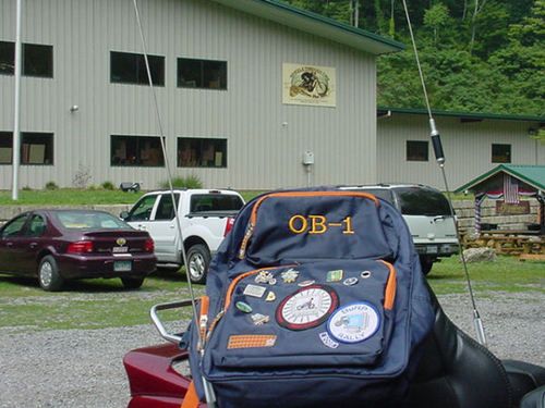 | The OB-1 knapsack rode on Walt's (PoppyMoto's) trike from the motel to the Wheels Through Time Museum. We got a few things at the museum to give him. |