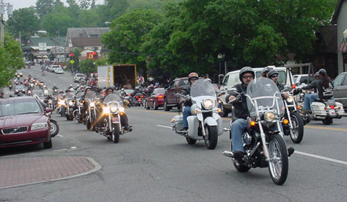 Riders approach Canada Street from the Beach Road where many had to park their motorcycles. |
