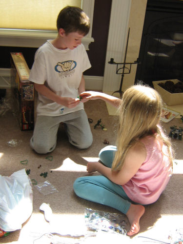 He got lots of presents. Here he works with his sister to put together a complicated present. She was born at the beginning of Americade week while he was born at the end of Americade week. Now they live just 35 miles away from Lake George. Good for us when we go to Americade. |