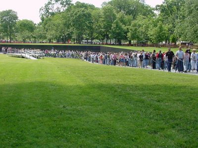 Rolling Thunder® Motorcycle Rally By Walter F. Kern Visitors to the Vietnam Memorial Wall We parked our trikes and walked over to the World War II Memorial. My wife had been there last Christmas when she visited the White House. Almost no one was there then. This time was different. The memorial honors the 16 million who served in the armed forces of the U.S. during World War II, the more than 400,000 who died, and the millions who supported the war effort from home. The place was filled with people. It has both Atlantic and Pacific Theater sections. From there we walked down to the Vietnam Memorial Wall. As this picture shows, it was lined with people walking by in both directions. Many were members of Rolling Thunder® but countless other visitors were there as well. I've been to the Wall before but at a time when there weren't so many visitors. Personally, I feel that it's better to visit when there isn't so much crowding. It's a place of deep sorrow for those who knew the people whose names are inscribed there. It's also a place that many have trouble revisiting because of the pain it brings to the soul.