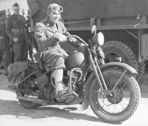 This is a picture is of my Dad, Sylvester Bonacorso, 1916 - 1995. He rode in the Army and La. State Police. I think the picture was taken in (WWII) Germany about 1941 or 42. I believe it to be a 1941-42 Harley-Davidson WLA. -- Ken Bonacorso