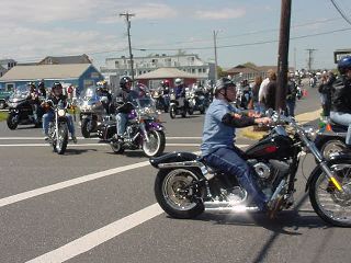 Bikers turn the corner into the parking lot at Point Pleasant Beach.
