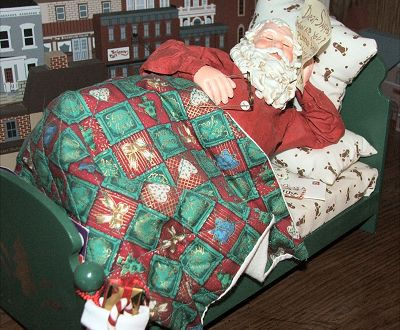 To get ready to speed across the globe, Motorcycle Santa needs to get a lot of extra sleep. He is shown here with one of his Christmas gift lists under his head. He was trying to memorize it but has fallen asleep still clutching his reading glasses. For once in his life, Motorcycle Santa is dreaming about a gift he would like to receive for himself. Imagine that ... Motorcycle Santa wants to receive a gift too. Motorcycle Santa is dreaming about what motorcycle he would like to get for Christmas.