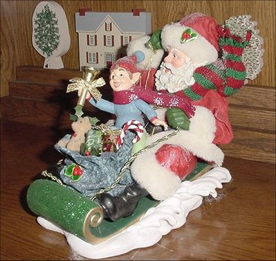Motorcycle Santa was used to sleds. After all, he had the biggest sled in the world, except it was designed to fly through the sky and not slide down hills. They got on the sled and Motorcycle Santa placed his toy bag in front of him. Connor grabbed a toy bell out of the bag and sat down in his Uncle's lap. Then he started ringing the bell.