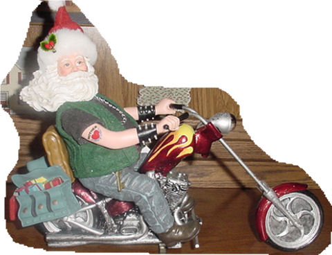 "Last year, the elves gave me a present, my own motorcycle chopper," said Motorcycle Santa. "Next year I'll be giving the children of the world a new game and it will include me on that chopper."